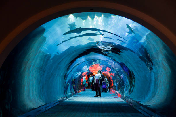 More than 33,000 aquatic creatures, including the largest collection of sand tiger sharks in the world, may be found in the 10 million-liter tank at the Dubai Aquarium and Underwater Zoo.