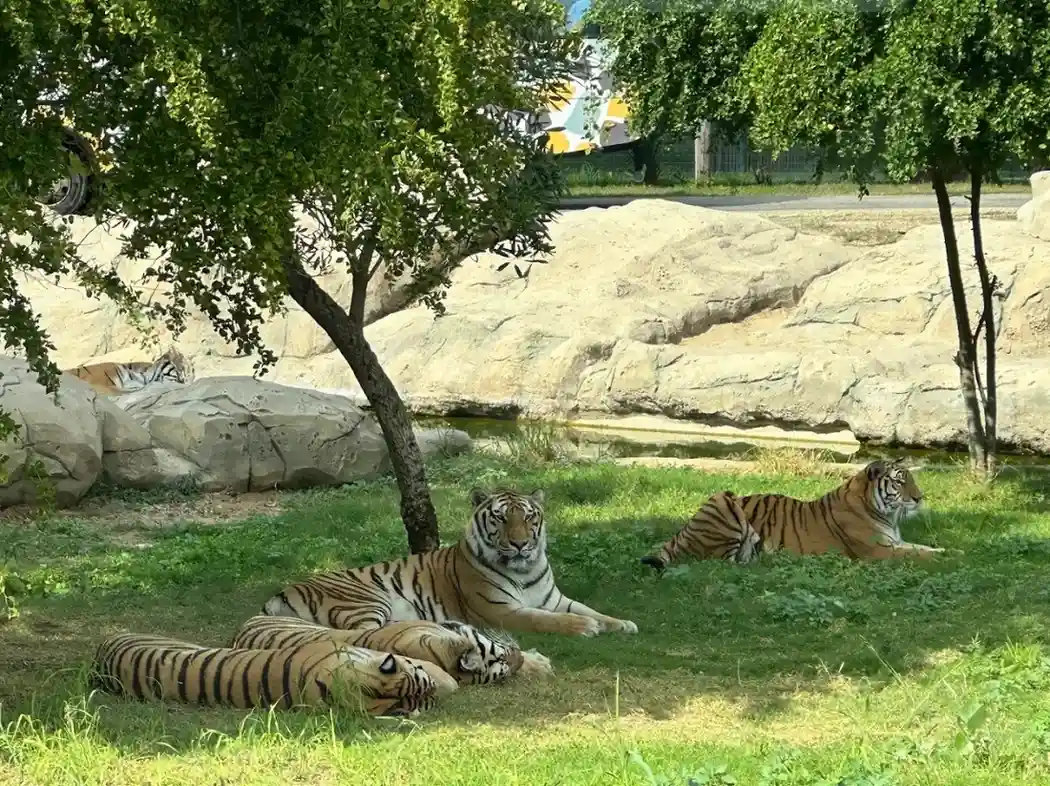 The tour offers up-close looks at a variety of species, including elephants, tigers, lions, and cheetahs, as they walk around in their natural habitats.